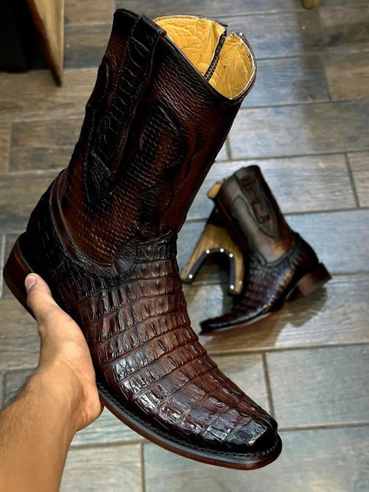 Men's Cowboy Boot In Genuine Ostrich Leather And Bovine Leather