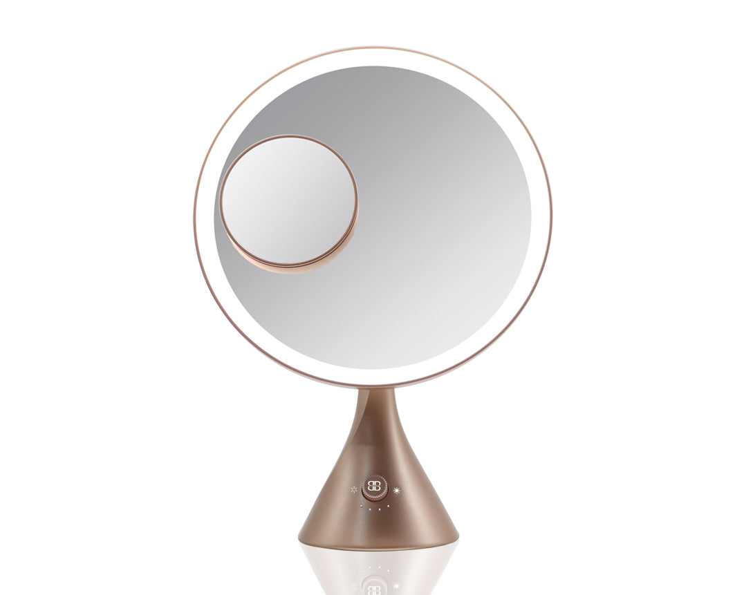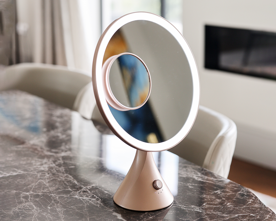 7.  Mirror Size - 10" (25.5cm) Diameter: Compact yet substantial, the Glow Mirror is the perfect size to fit seamlessly into your daily routine without taking up too much space.