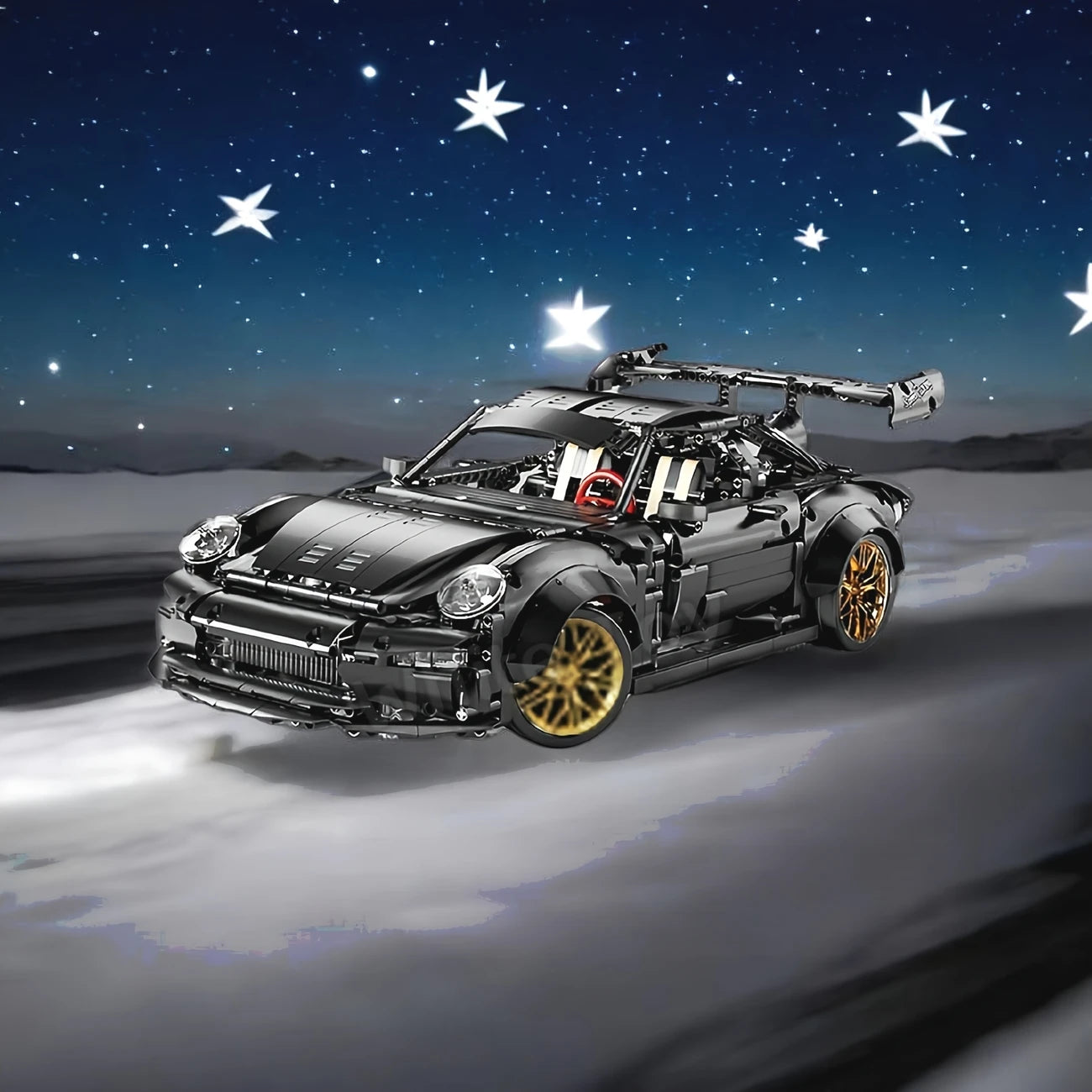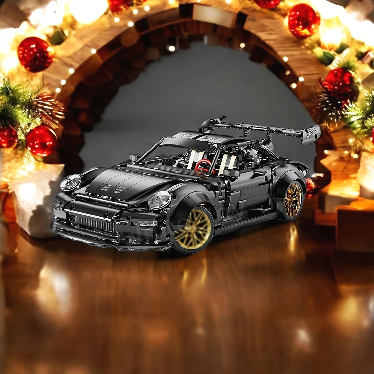 The all-black colorway gives the car a stealthy, high-end look, making it a stylish desktop or shelf ornament.