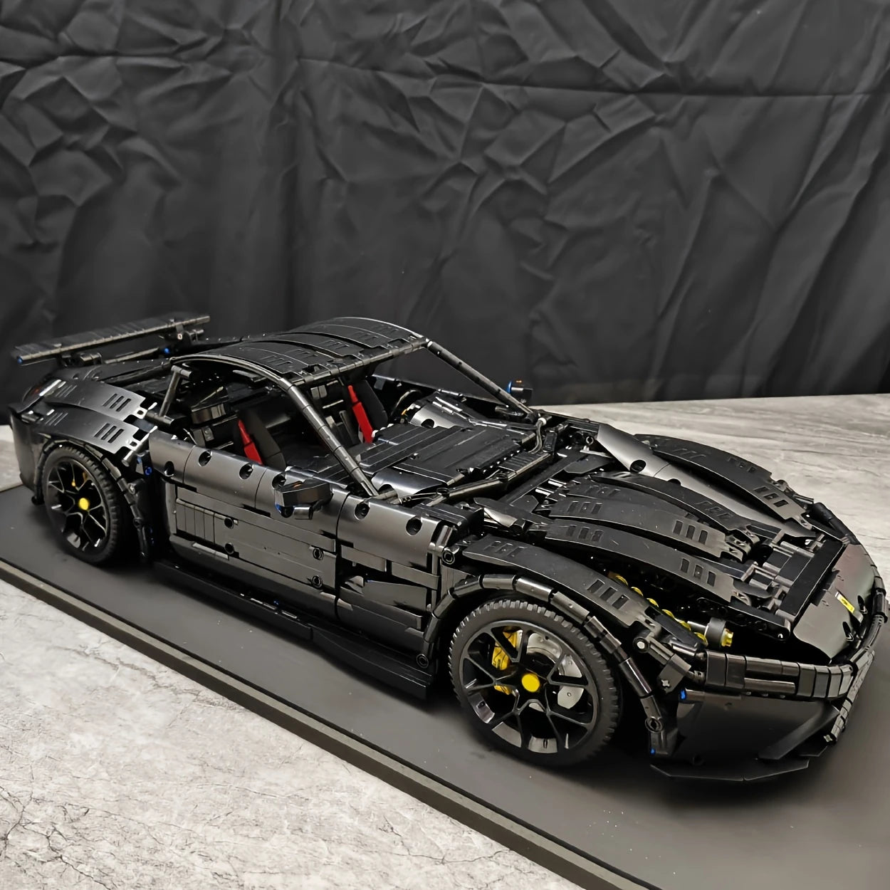 Black Sports Car Building Blocks Set, High Difficulty MOC Model