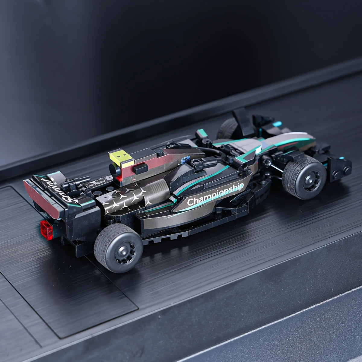 Features a sleek, black body with dynamic lines and details, capturing the essence of a high-speed performance car—perfect for racing fans.