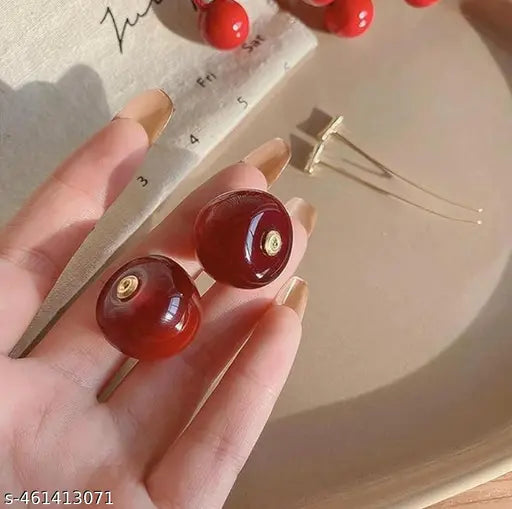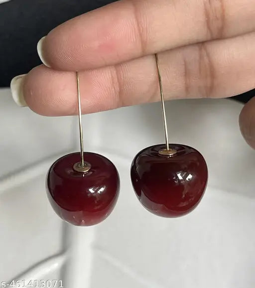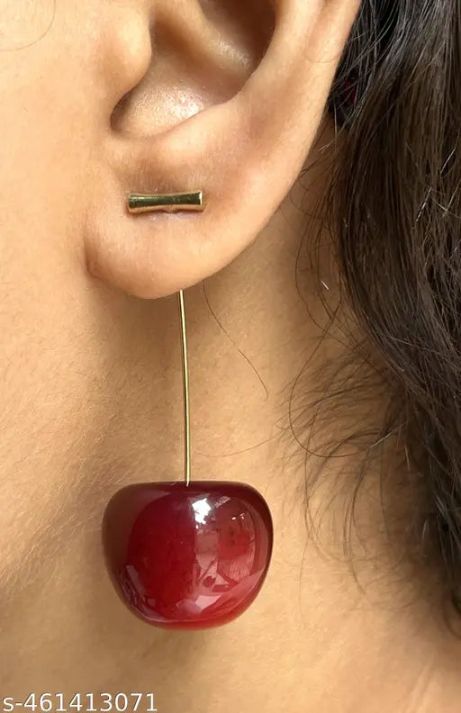 Cherry Earrings are handcrafted. They are made up of high-quality resin and stainless steel 18k gold plated. Completely free from cadmium and nickel. 100% Safe and Hypoallergenic.