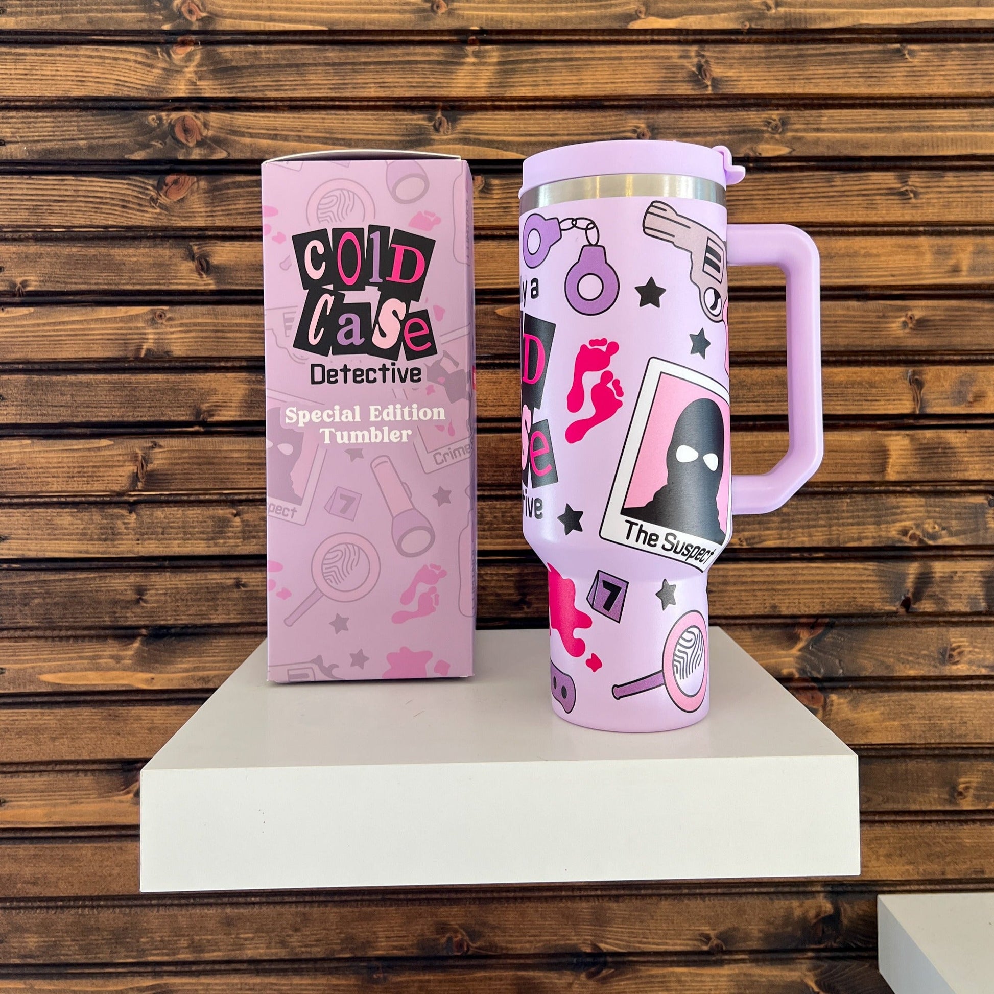Solve every cold case with our 40 oz NewGen Tumbler! Made for true crime lovers, this stainless steel tumbler comes in a gift box for the ultimate detective experience. Preorder now for the perfect gift to crack any case!