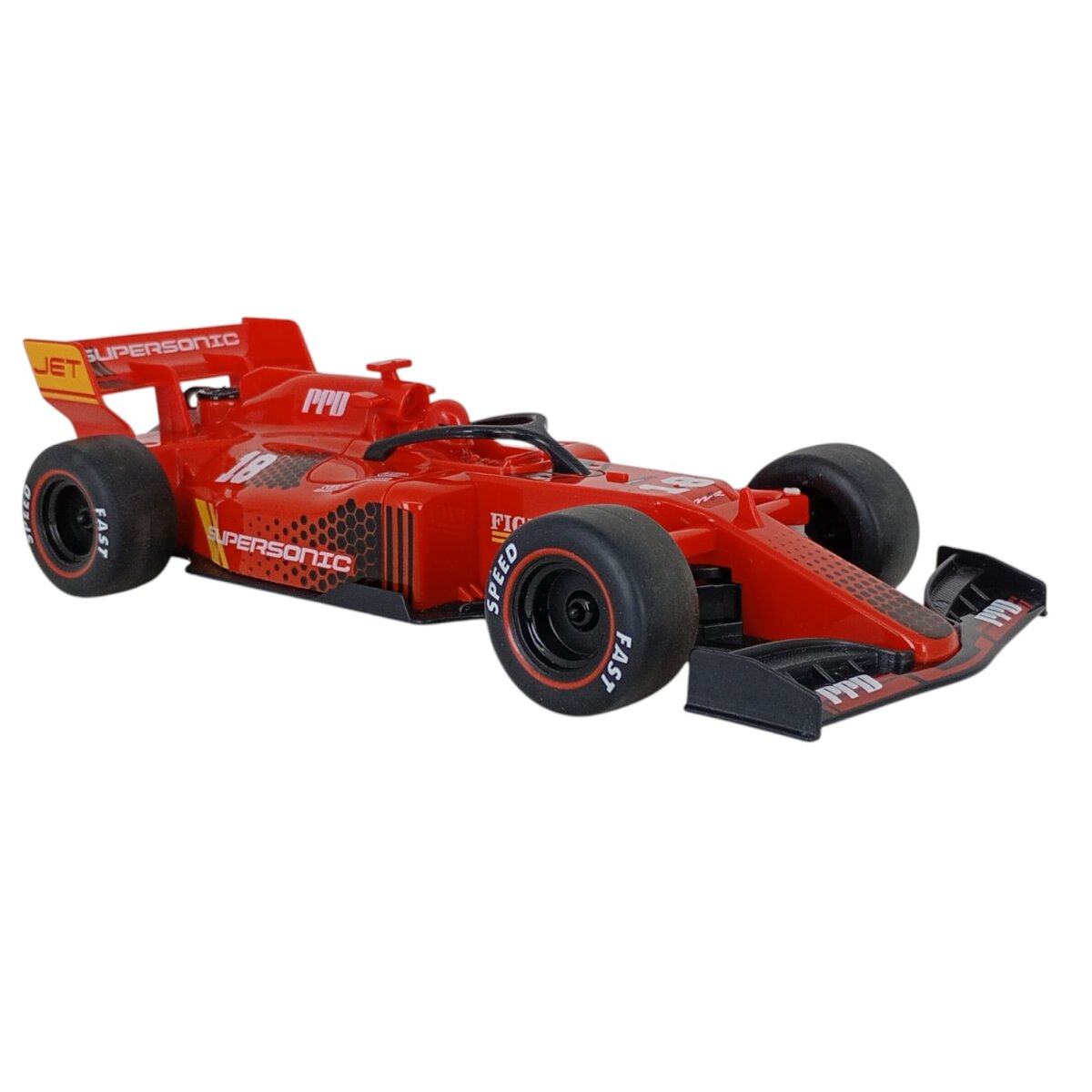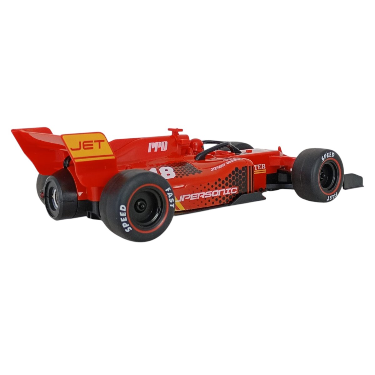 Equipped with a unique spray feature, the car emits mist from its rear, simulating exhaust fumes, adding to the realistic racing experience.