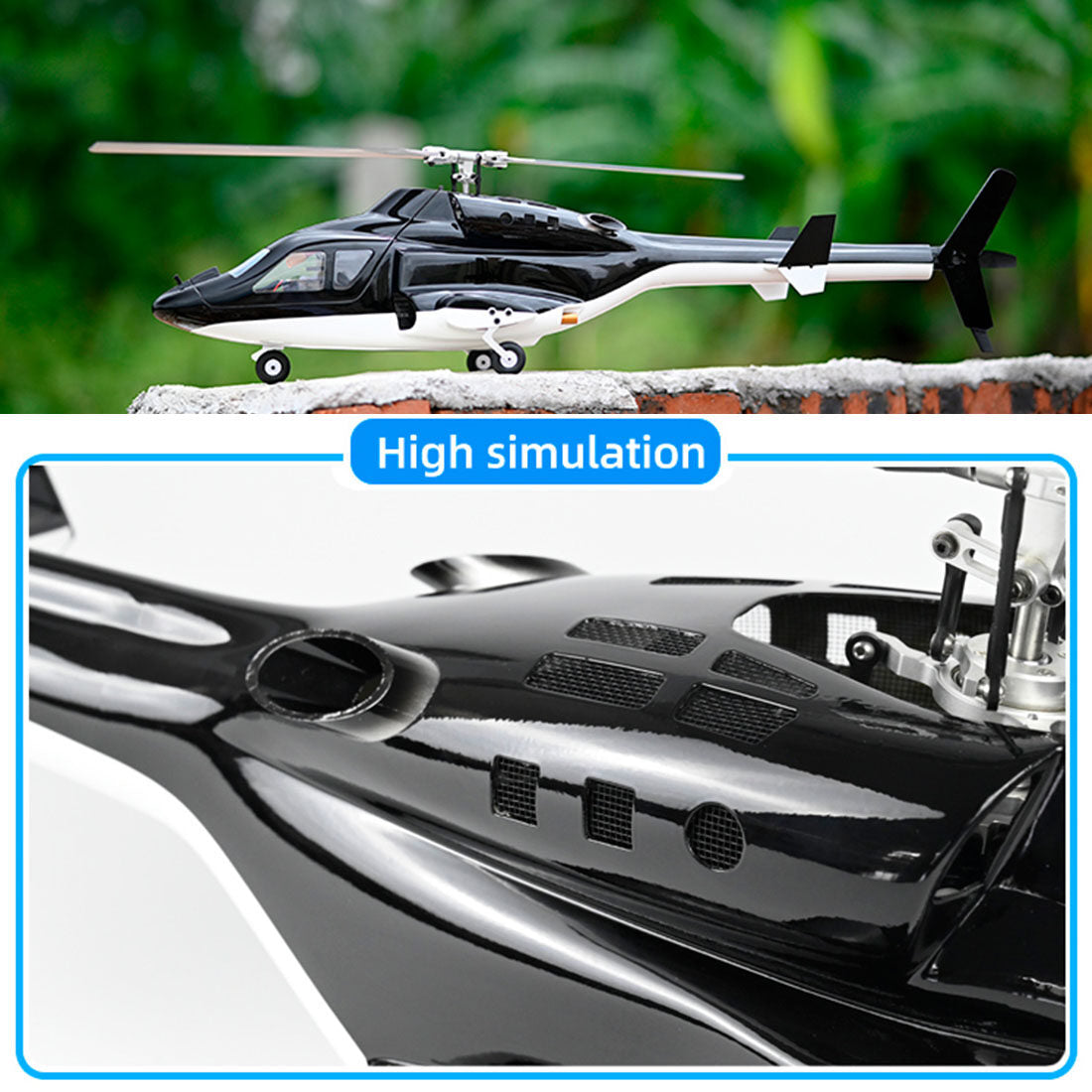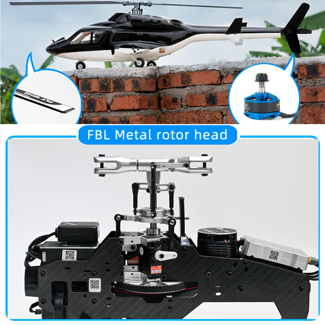 .Powered by a 16V high-voltage brushless 2816 motor for increased power and efficiency. Paired with a 32-bit dual-processing 60A all-metal ESC specifically designed for helicopters, ensuring ultra-responsive performance and excellent speed control throughout intense 3D flights.