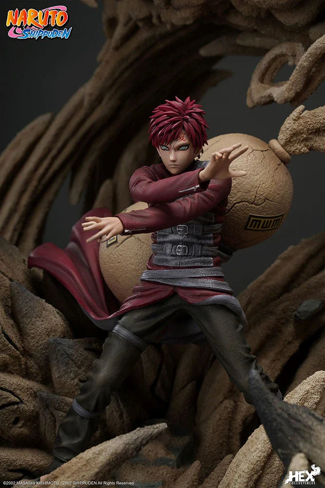 HEX Collectibles present the Gaara Ultimate Diorama Statue in 1:8 scale from Naruto Shippuden. The statue measures 24.4" tall, inspired by the battle scene between Gaara and Deidara. As the Fifth Kazekage, Gaara fights with Deidara while protecting the village from being involved.