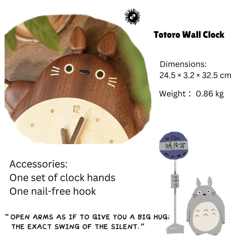 Beyond being a functional clock, it serves as an eye-catching piece of decor, suitable for kids' rooms, nurseries, or as a fun accent for any Totoro or Studio Ghibli fan's collection.