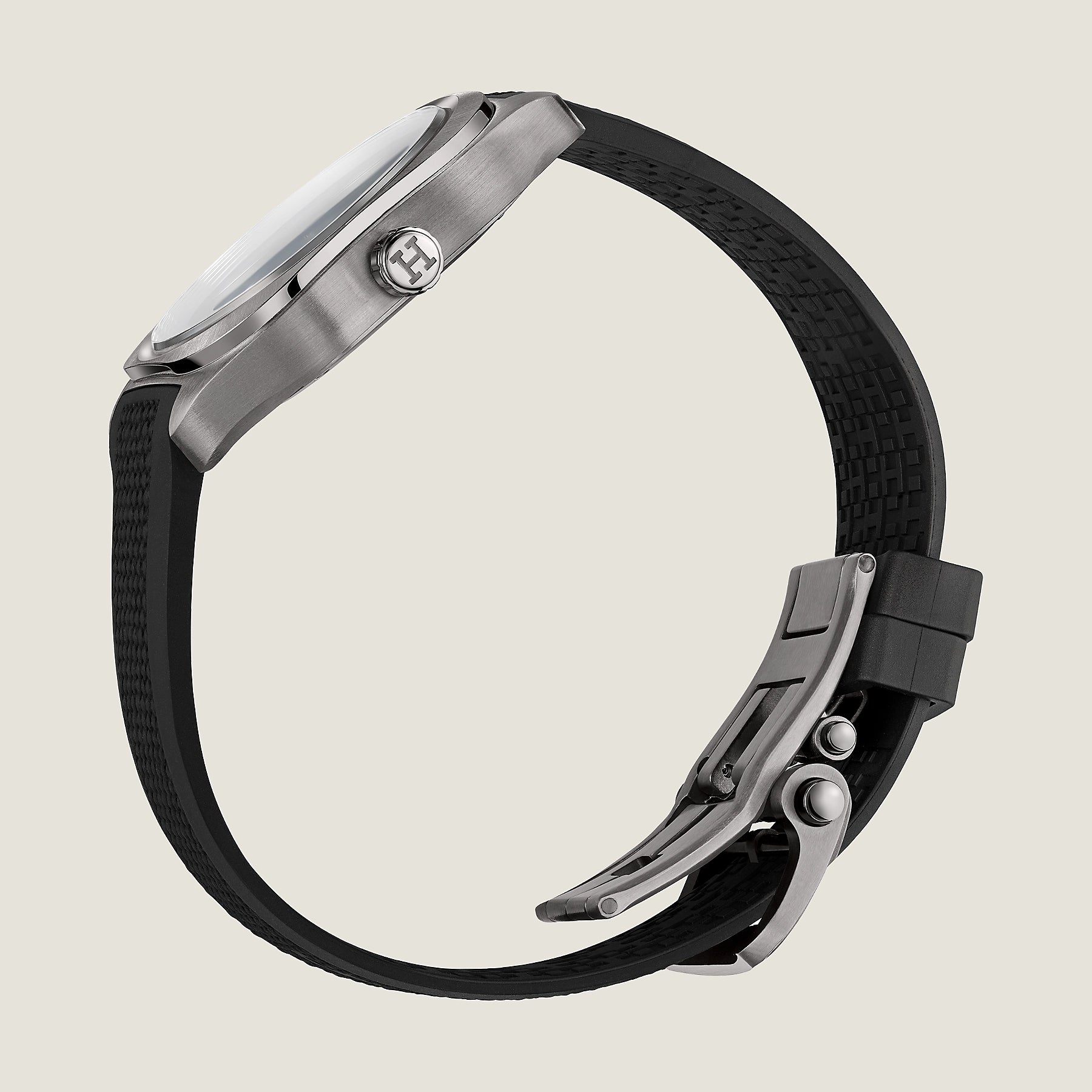 The Swiss Movement in the Hermès H08 watch ensures exceptional accuracy and reliability. Known for their precision, Swiss automatic movements are considered some of the best in watchmaking. The H08 features a high-quality Swiss mechanism that provides smooth, accurate timekeeping without the need for manual winding. This level of craftsmanship guarantees the watch performs consistently, while maintaining the sophisticated feel Hermès is known for. It blends impeccable engineering with luxury, making the watch a symbol of both style and precision.