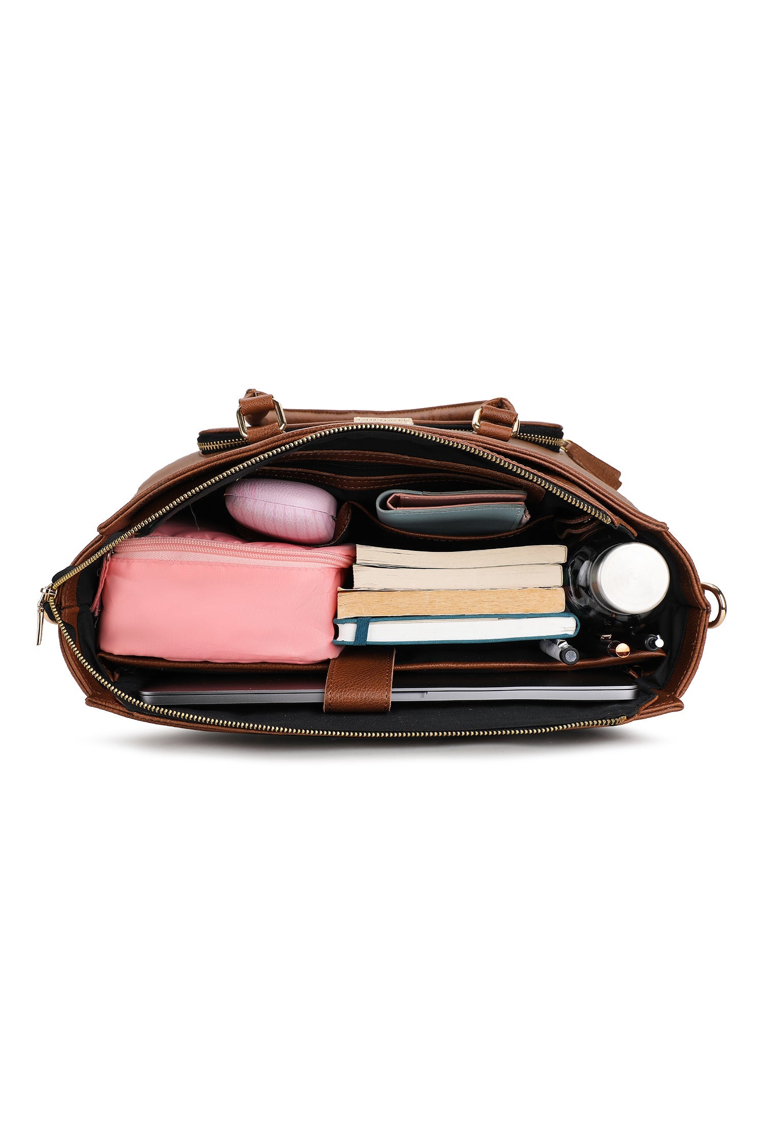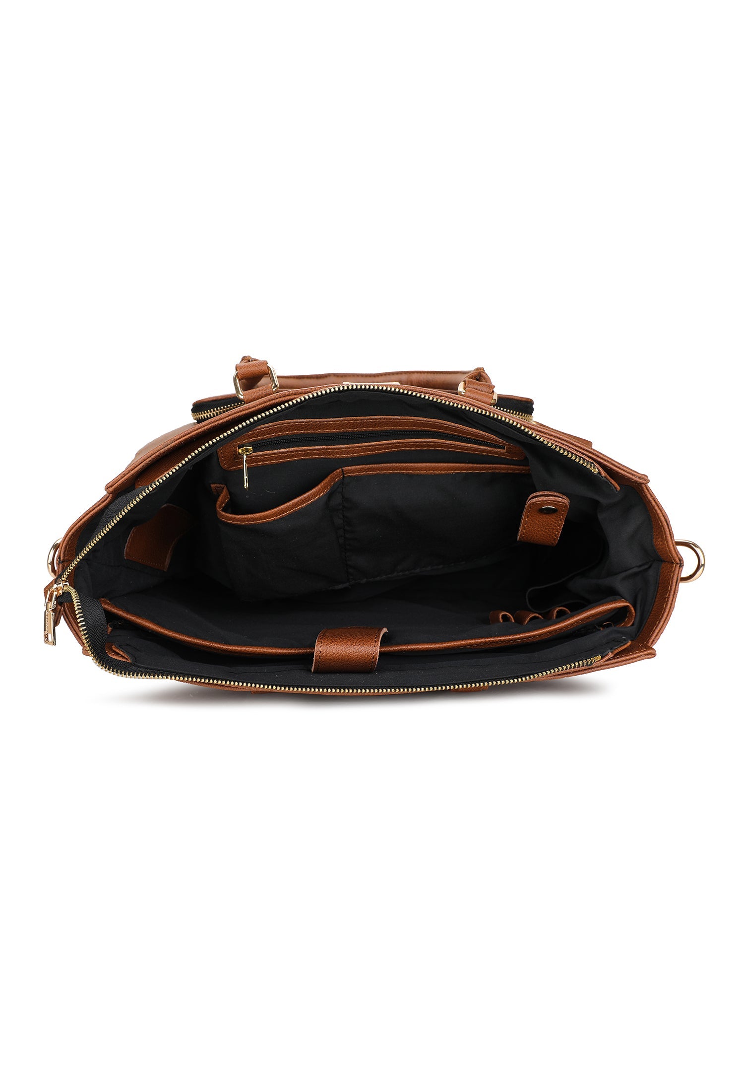 Made from premium vegan materials with gold-finish hardware, blending fashion with function.