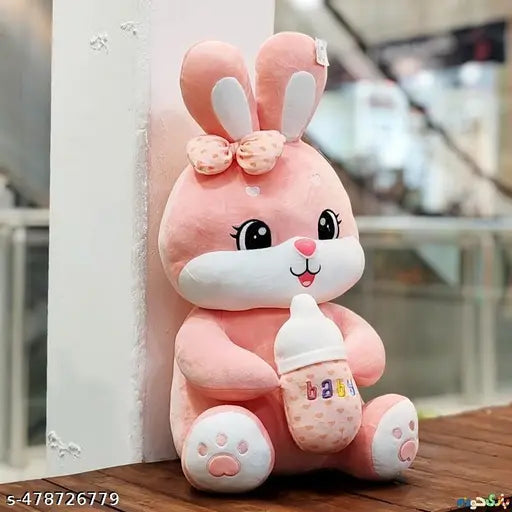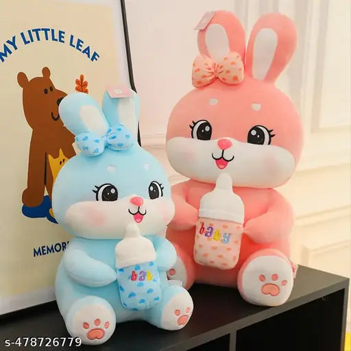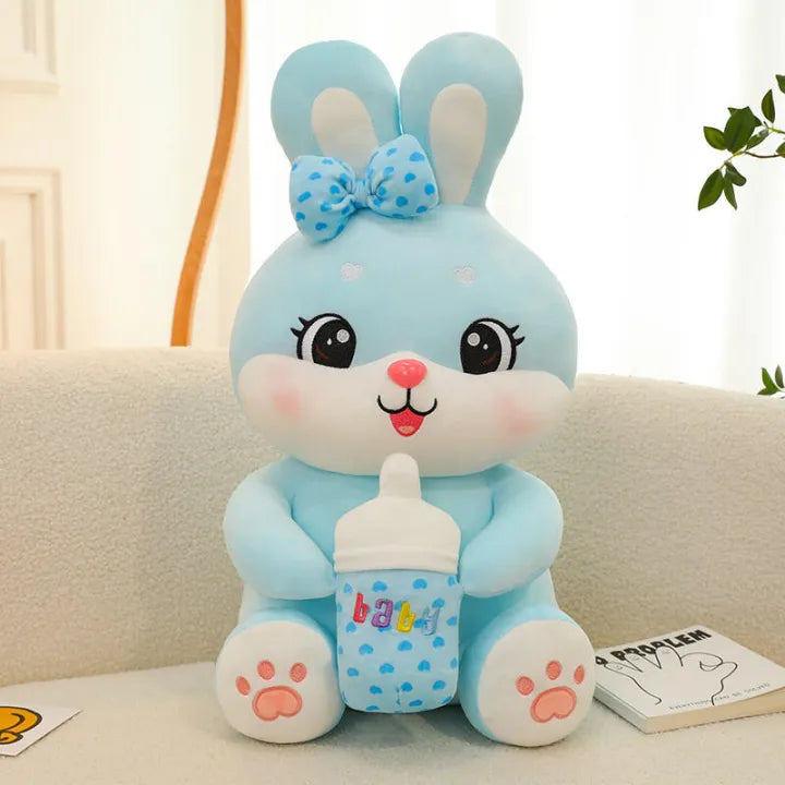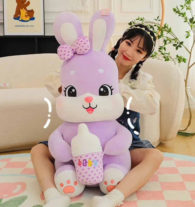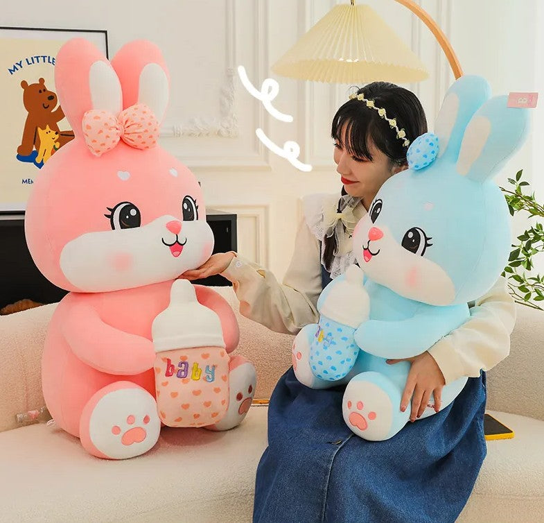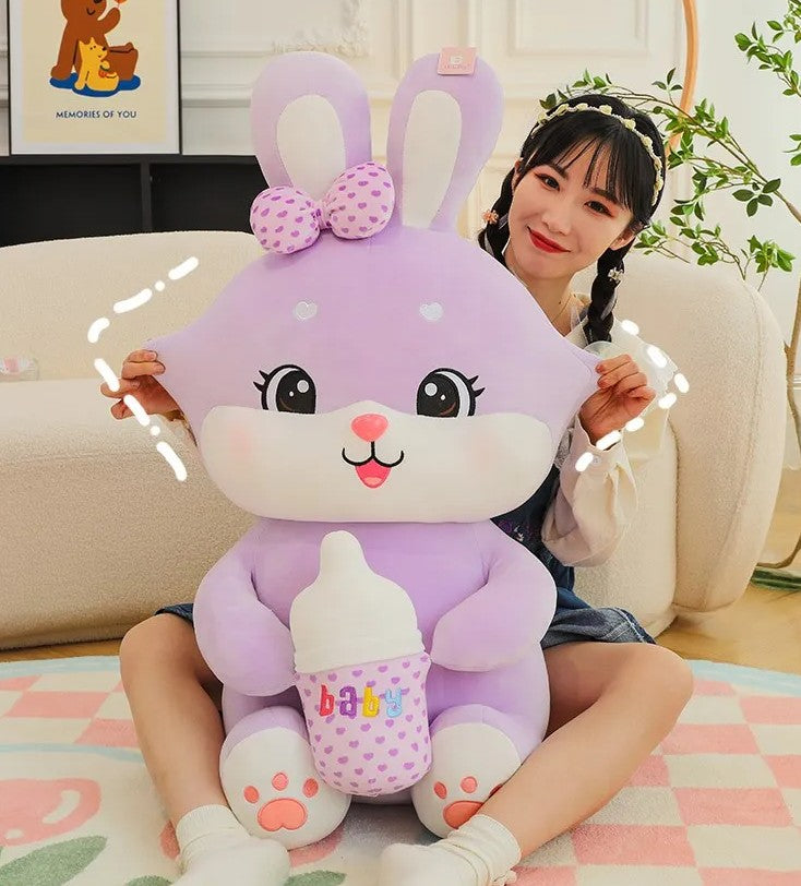 Large Baby Bottle Rabbit Plush Toy Bow Hold Baby Cute Super Soft Rabbit Doll