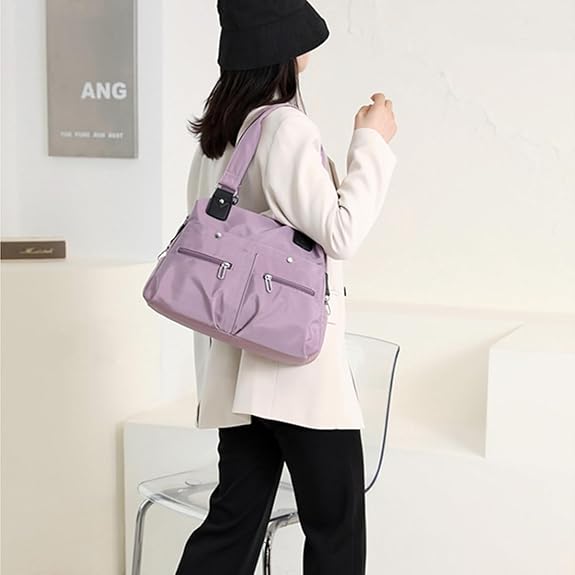 The Organized Storage in the Large Capacity Waterproof Multi-Pocket Shoulder Bag features multiple compartments and pockets to keep your belongings neatly arranged and easily accessible. From separate slots for your phone, wallet, and keys to larger sections for books, tablets, or a laptop, this design helps you stay organized throughout the day. No more rummaging through your bag—everything has a designated space, making it easier to find what you need quickly while keeping your essentials secure and in place.