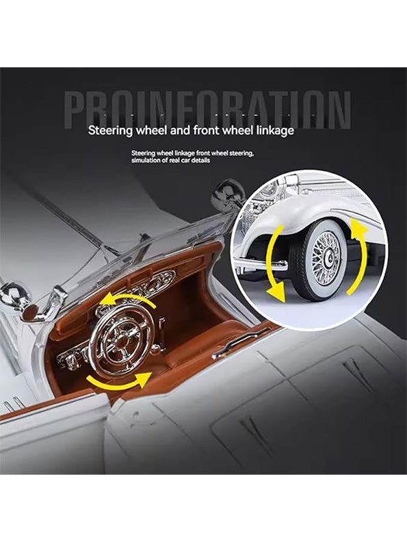 • Classic Mercedes Benz Replica: A stunning 1:24 scale model of the timeless Mercedes Benz 500K, ideal for collectors.