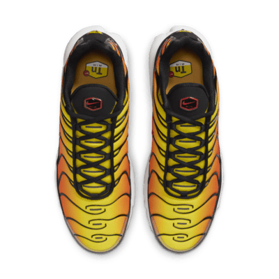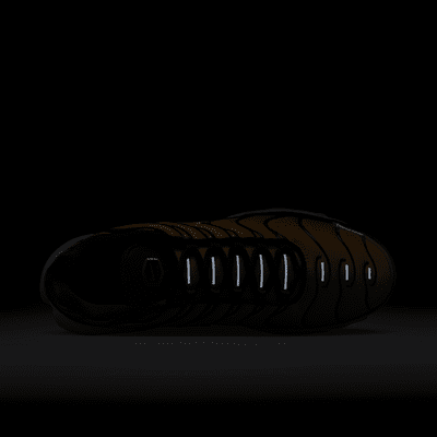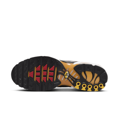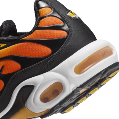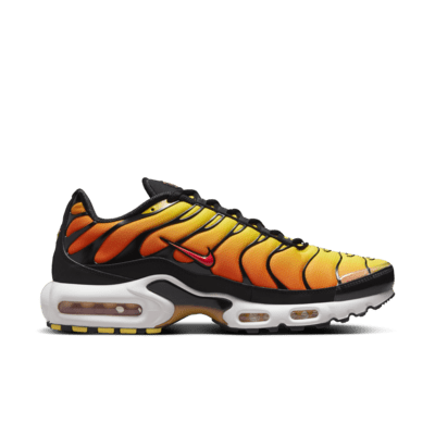 Early sunsets, late-night campfires—'tis the season to bring fresh energy to your Tuned Air experience. Enter this blazing edition of the Air Max Plus. Its high-temp colour palette melds gradient hues with glossy black accents for style that sizzles. Plus, a Max Air unit in the heel and forefoot bring legendary bounce, letting you take to the streets in comfort.
