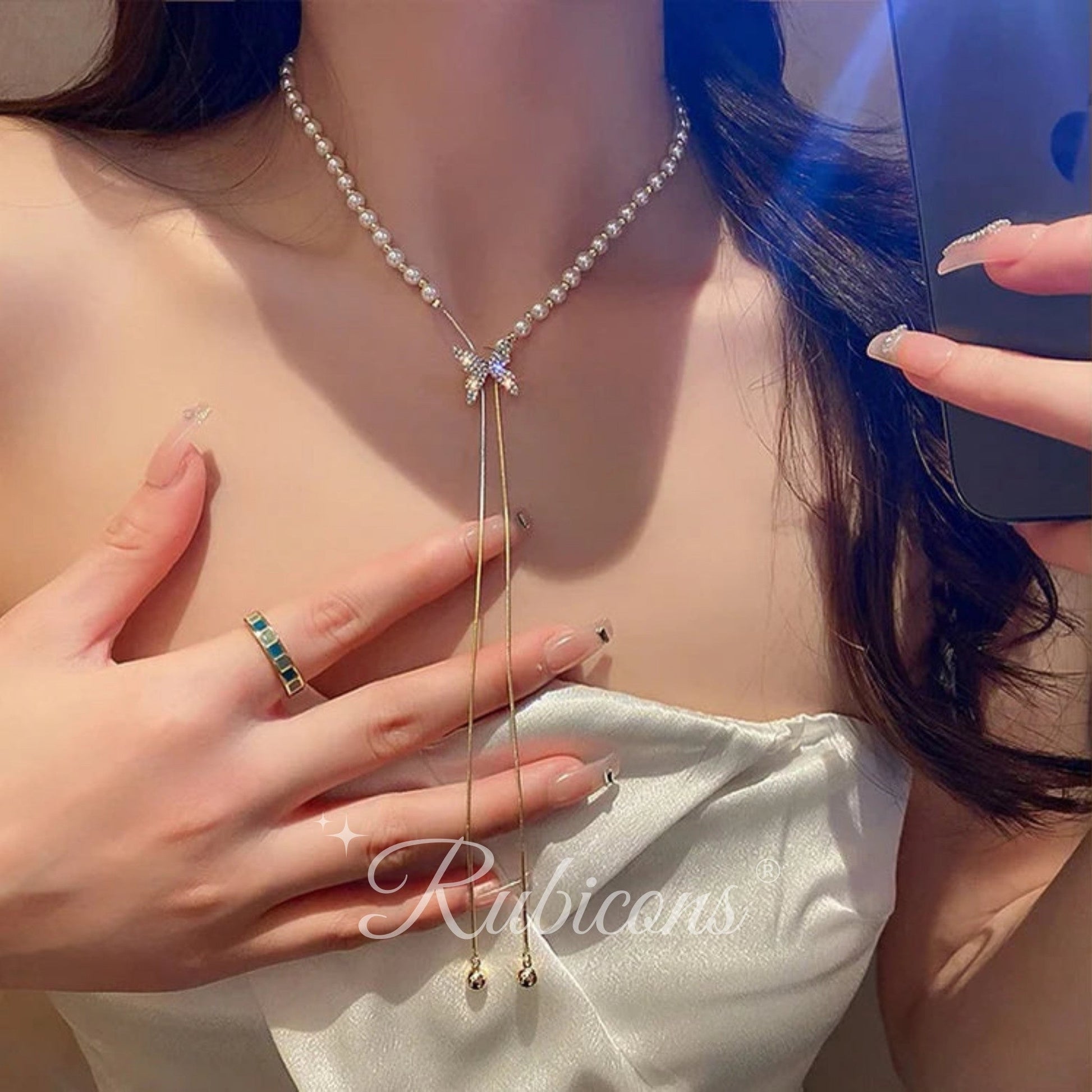 Rubicon presents the new Butterfly necklace, an enchanting adjustable pearl chain designed to bring out the charm and elegance of your beautiful face!