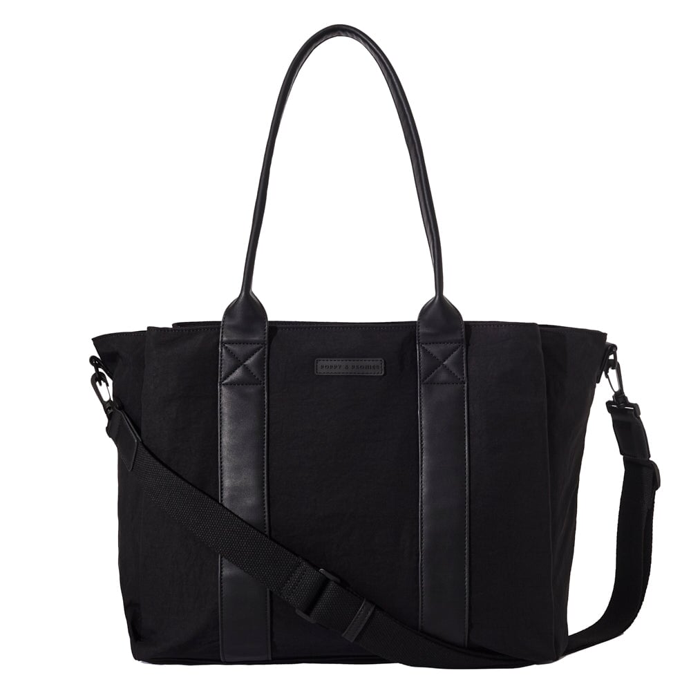 Made with recycled nylon, vegan leather accents, and a lining crafted from recycled plastic bottles.