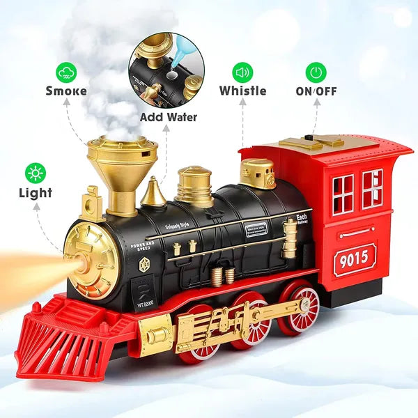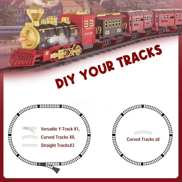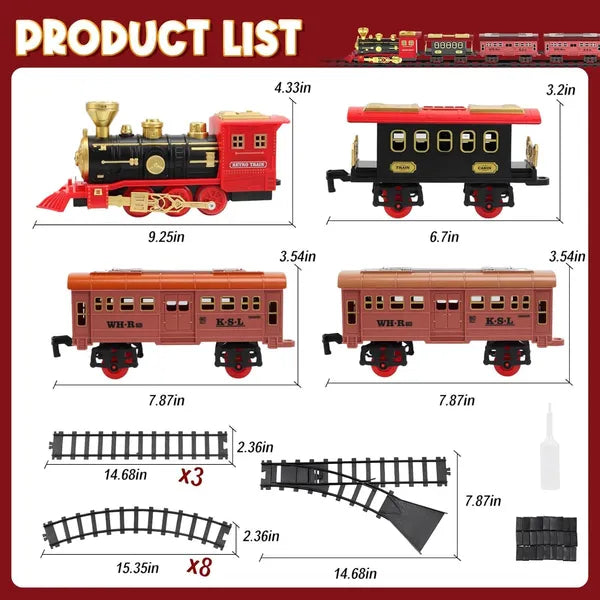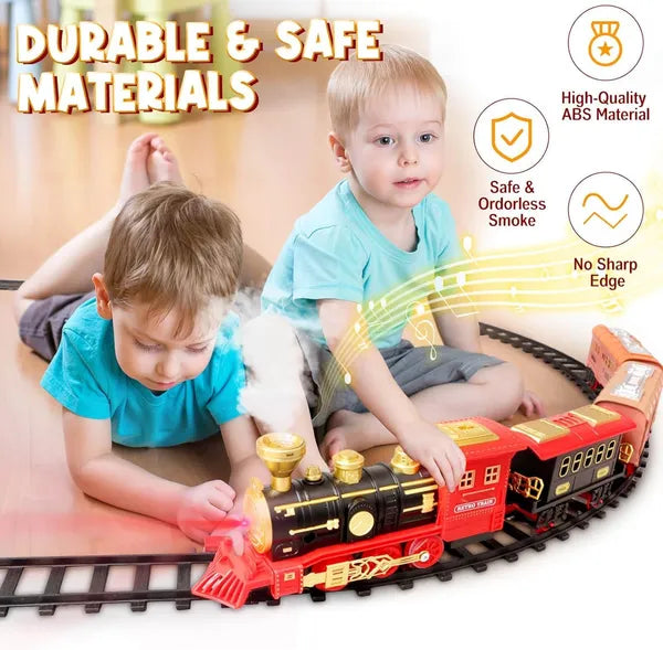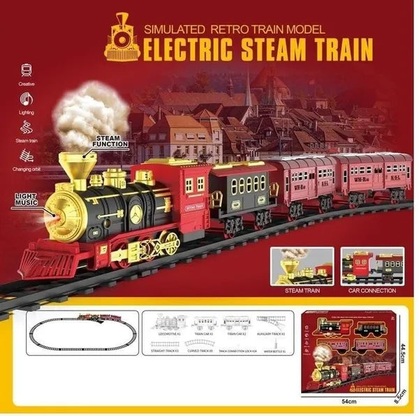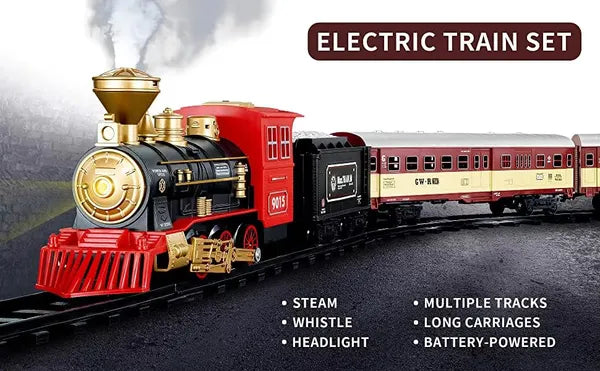 The train set features a realistic steam locomotive engine, designed to mimic the look and movement of a traditional steam train. Its authentic details, including the sound and steam effects, create an immersive experience for boys, sparking their imagination. The engine moves smoothly along the tracks, bringing excitement and a sense of adventure as they watch it in action. This lifelike locomotive enhances the play experience, making it both fun and educational by introducing children to classic trains.