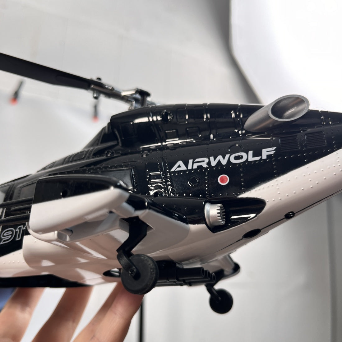 WOLFBUSH AW-911 Airwolf 1/34 Scale 2.4G 9CH Flybarless RC Helicopter Model with 6G/3D Stunt Mode and GPS Positioning (RTF Version/ Mode 1/Mode 2 Switchable)