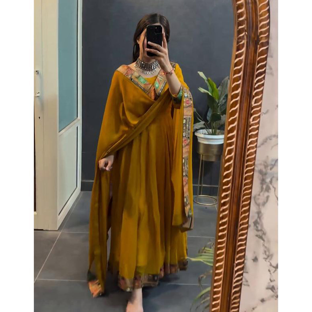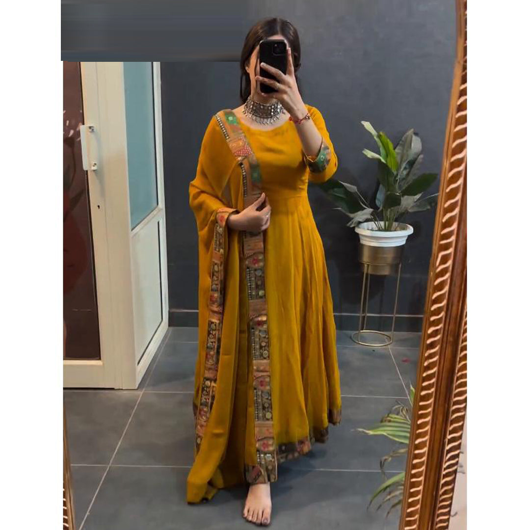 YELLOW PLAIN DESIGNER KURTI WITH LACE BORDER HEAVY DUPATTA